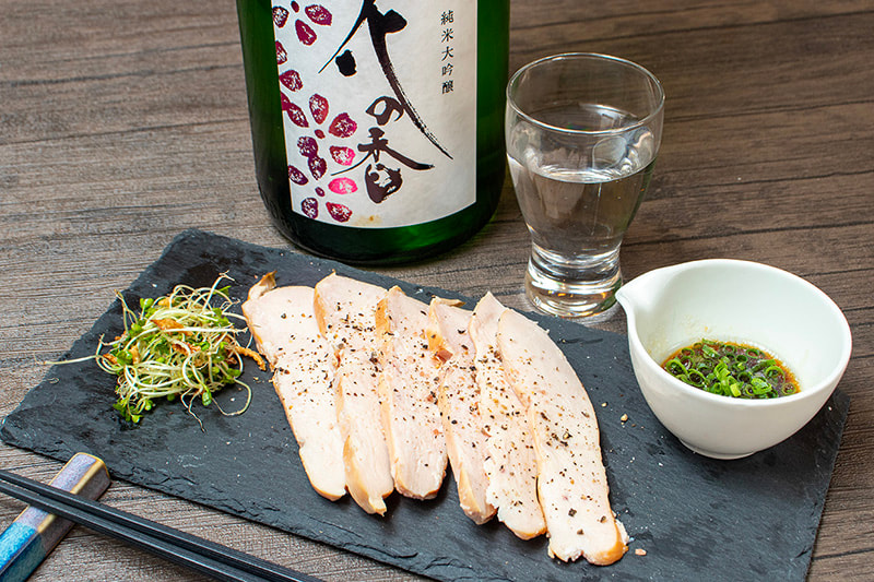 フードはメニュー表で600円(税込660円)以下のものから選択を。「スモークチキン」(写真)や「ソーセージ」「チーズ2種盛り(カマンベール×ブルーチーズ)」など、ドリンクに合わせてカスタマイズできるのがうれしいですね。