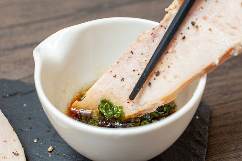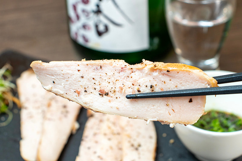 自家製燻製の「スモークチキン」は、塩コショウでシンプルに味付けされており、そのまま食べても、しっとりやわらかな口当たり。添えられたトリュフオイルとにんにくの自家製ソースを合わせれば、アルコールがさらに進みます。
